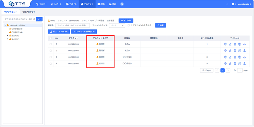 TTSプラットフォームのアカウント管理機能では、メインアカウント(親)から複数の子アカウントを作成し、それぞれに閲覧権限を柔軟に設定可能。