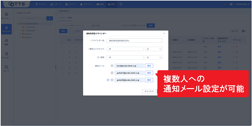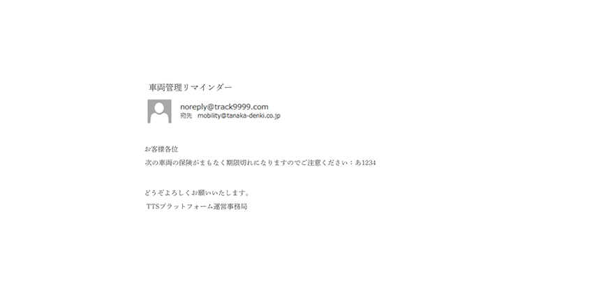 TTSプラットフォームのリマインダー機能では、車両保険や運転免許証の有効期限をあらかじめ登録しておくだけで、更新時期が近づいた際に自動でメール通知。