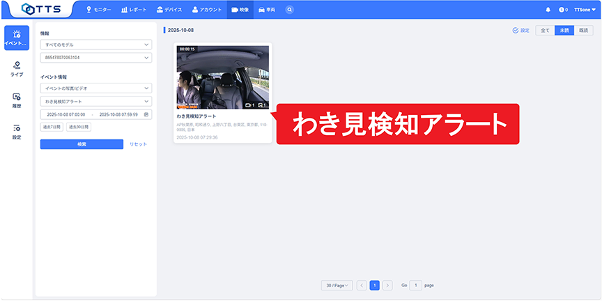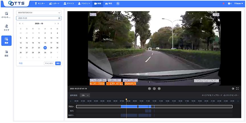 ドライブレコーダー搭載のTTS端末なら、運転中の映像も運行後の履歴も、すべてクラウド上で確認・活用可能。